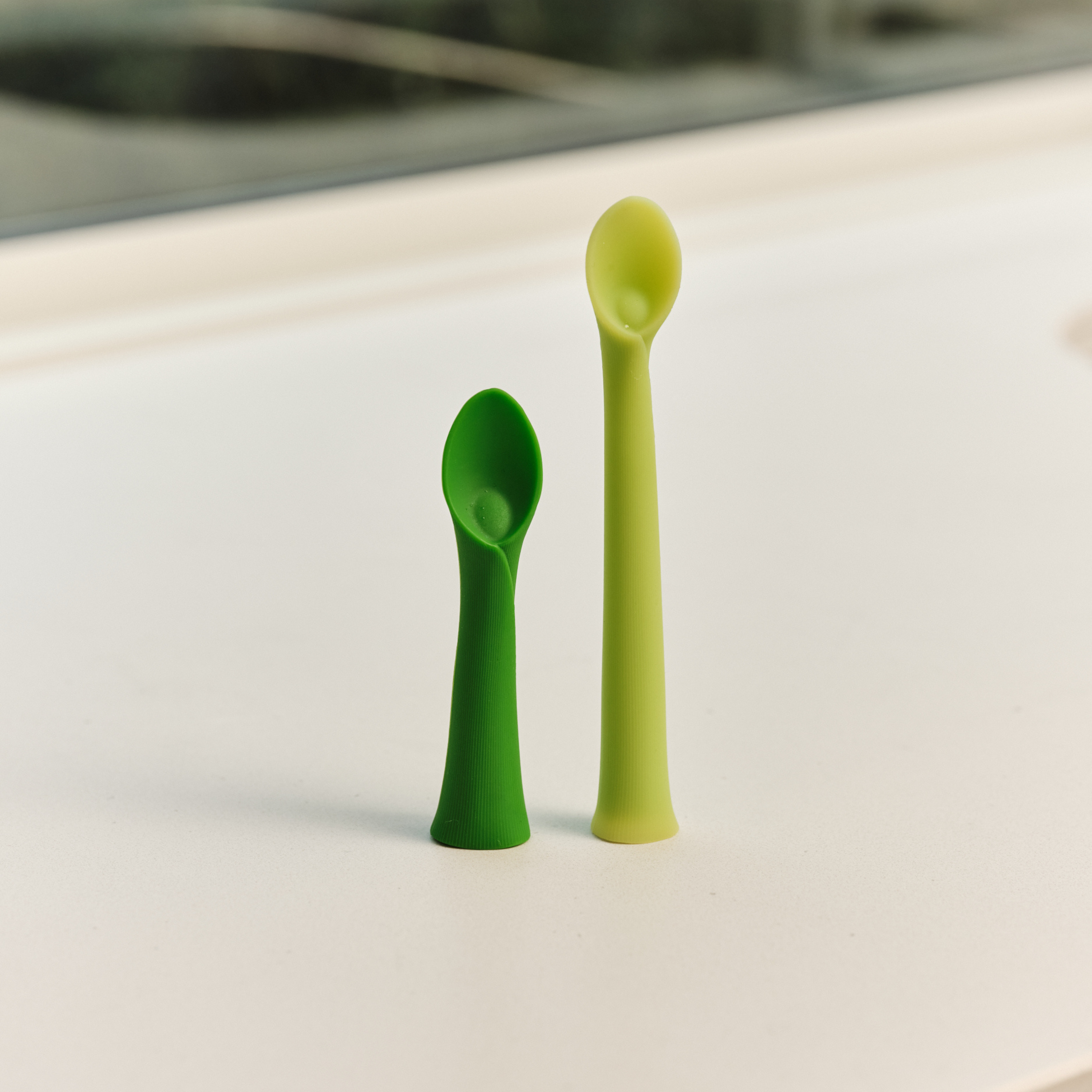 Our set is designed to grow with your baby. It includes two spoon sizes: