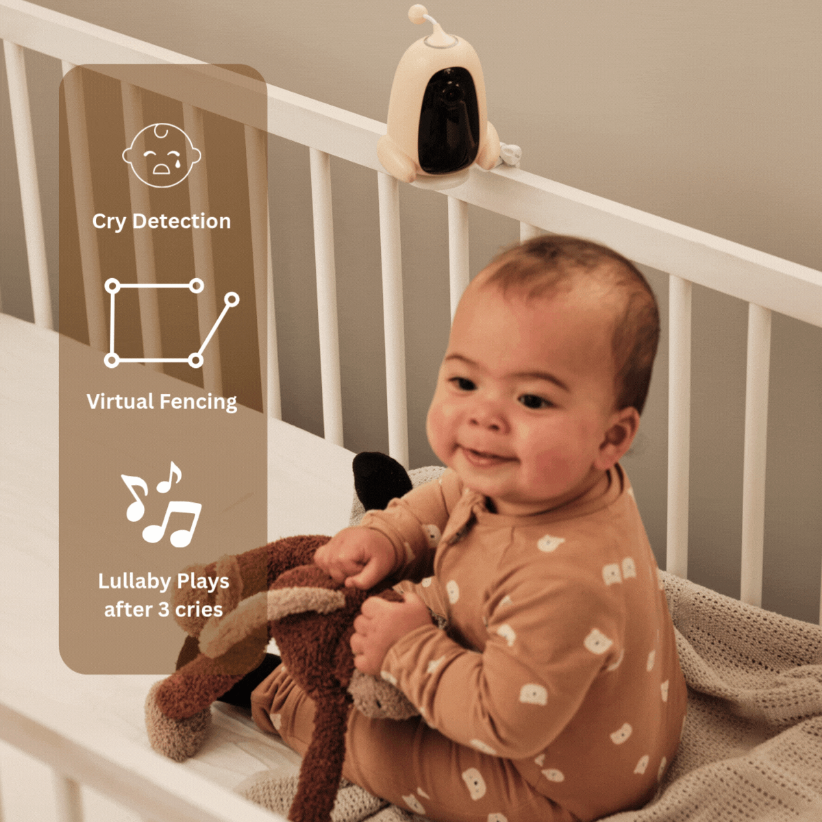 The BioGuardian Camera extends your watchful eye with built-in smart safety features. The AI Virtual Fence lets you set safe zones and alerts you instantly if your child wanders. Intelligent Crying Detection ensures you’re only notified for real distress, not just every sound. Plus, soothing your little one is easy with Two-Way Audio - comfort them from anywhere in your home.